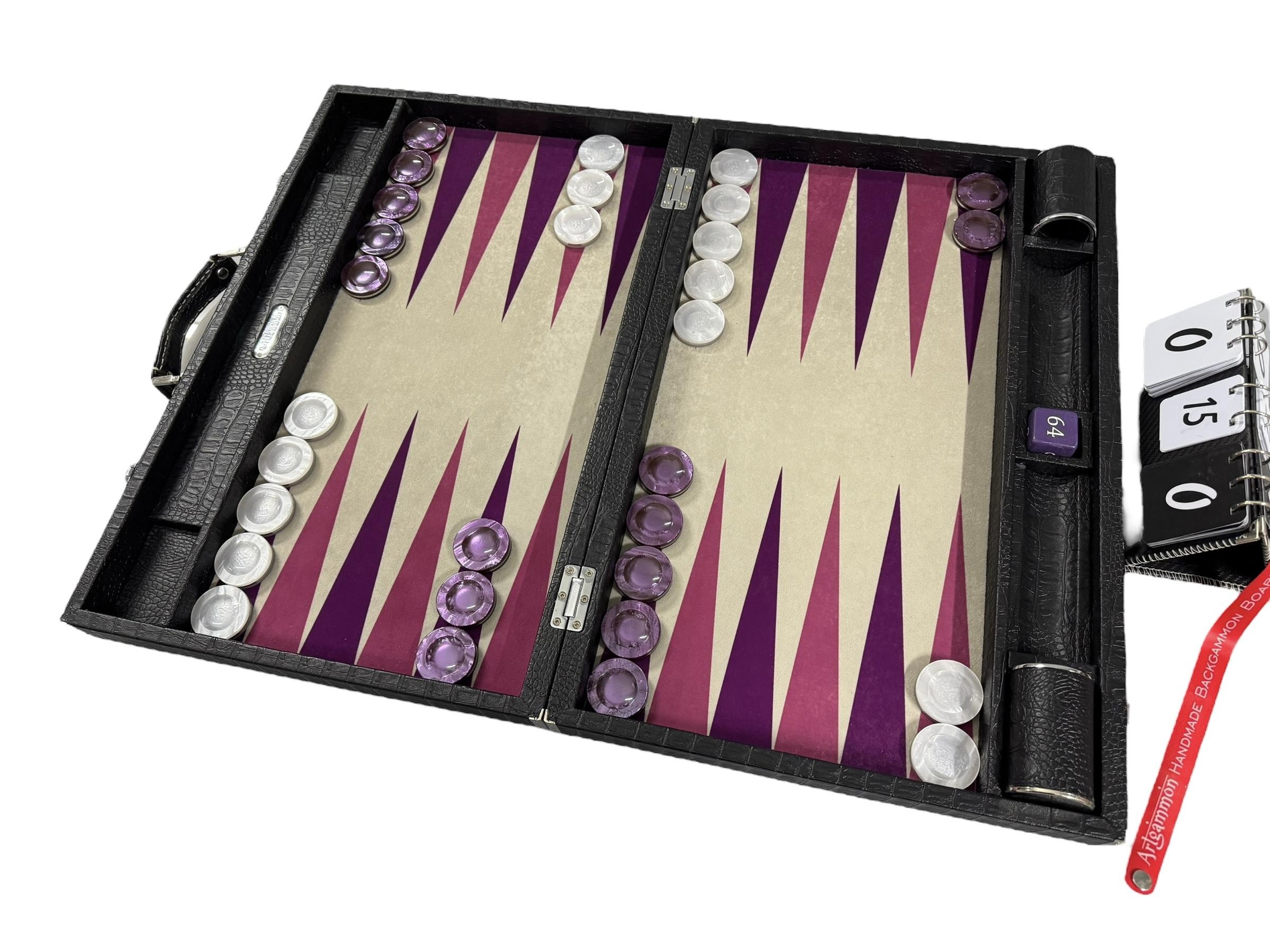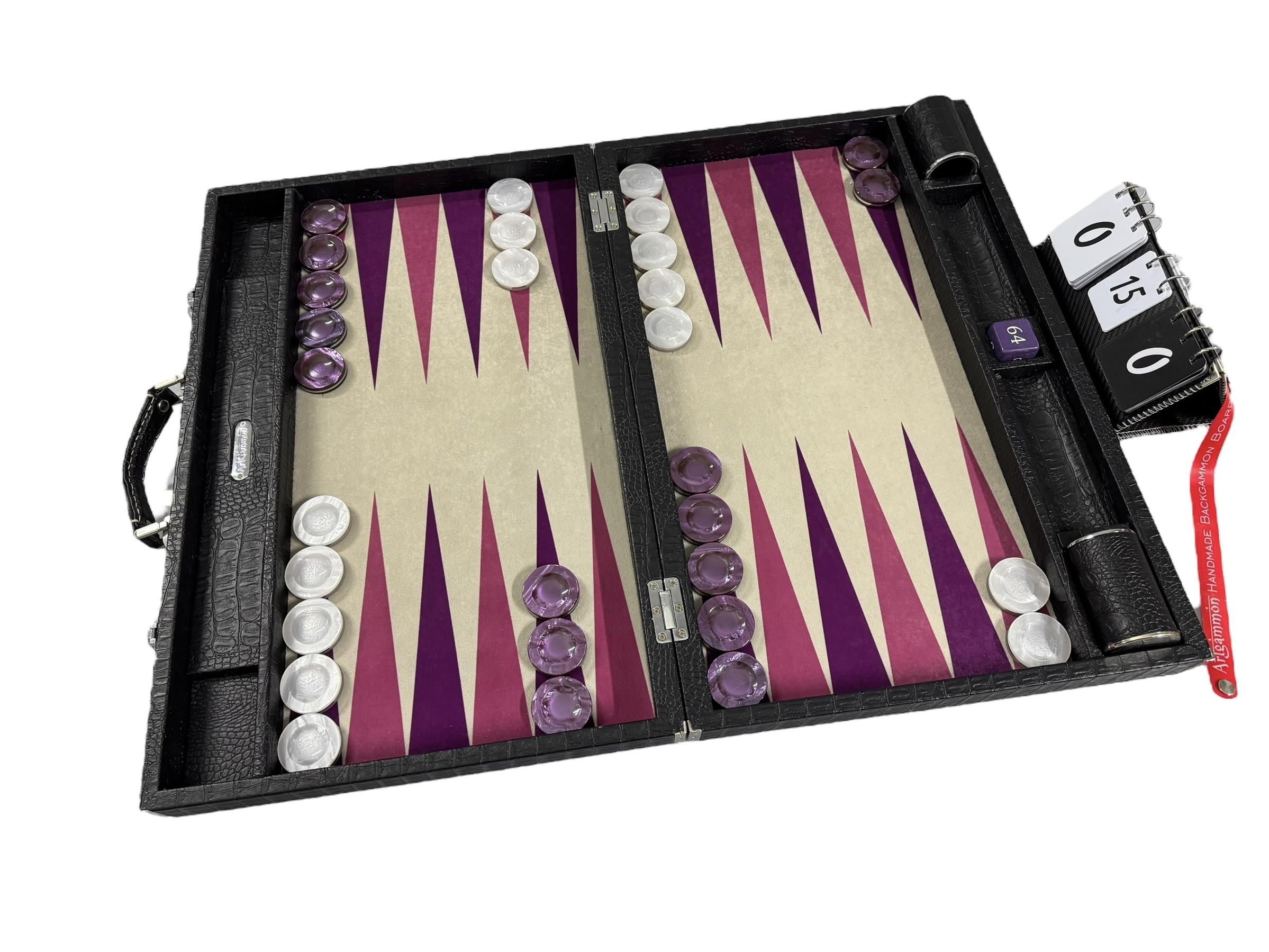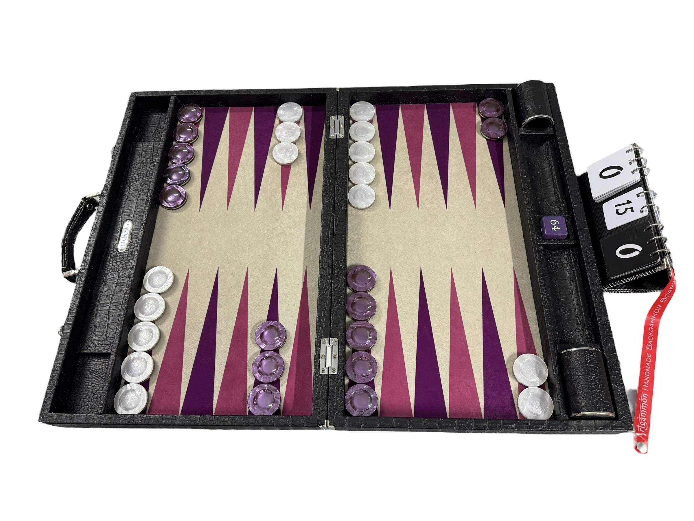 Playing Surface: A special synthetic sewn cloth is chosen for its durability, stain resistance and unmatched playing characteristics. It provides action dice rolls as well as a silky, gliding feeling for the movement of checkers.