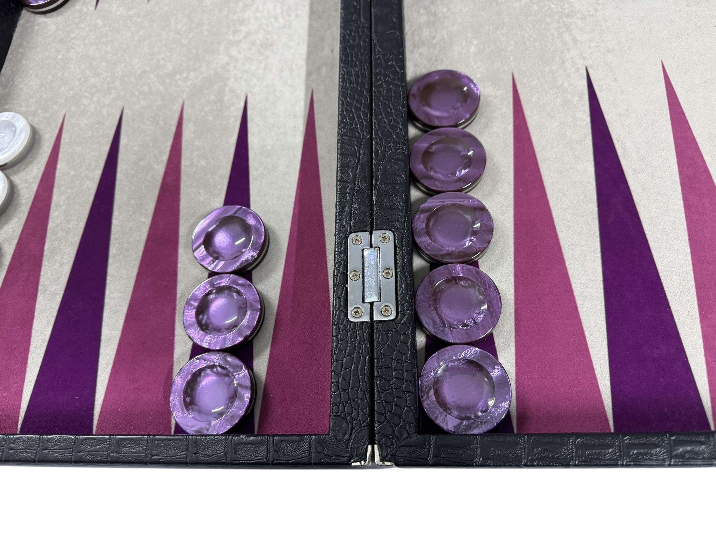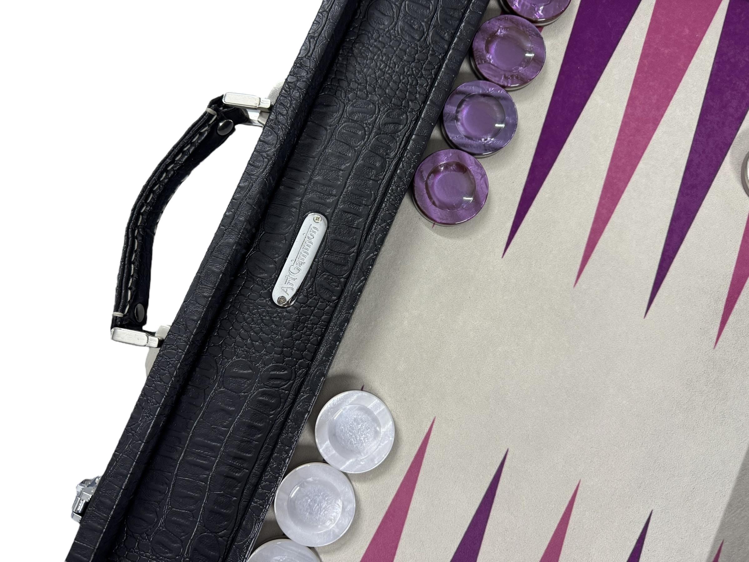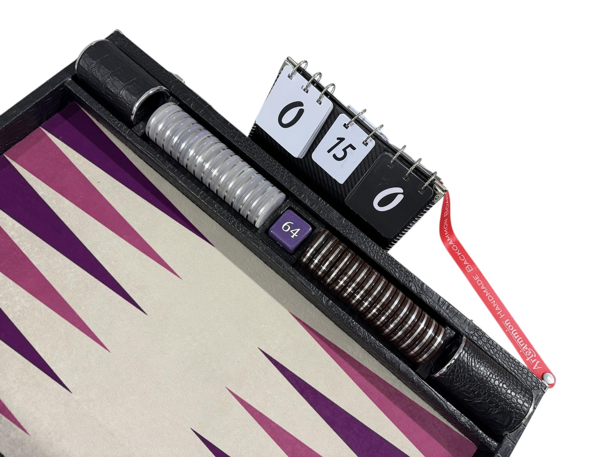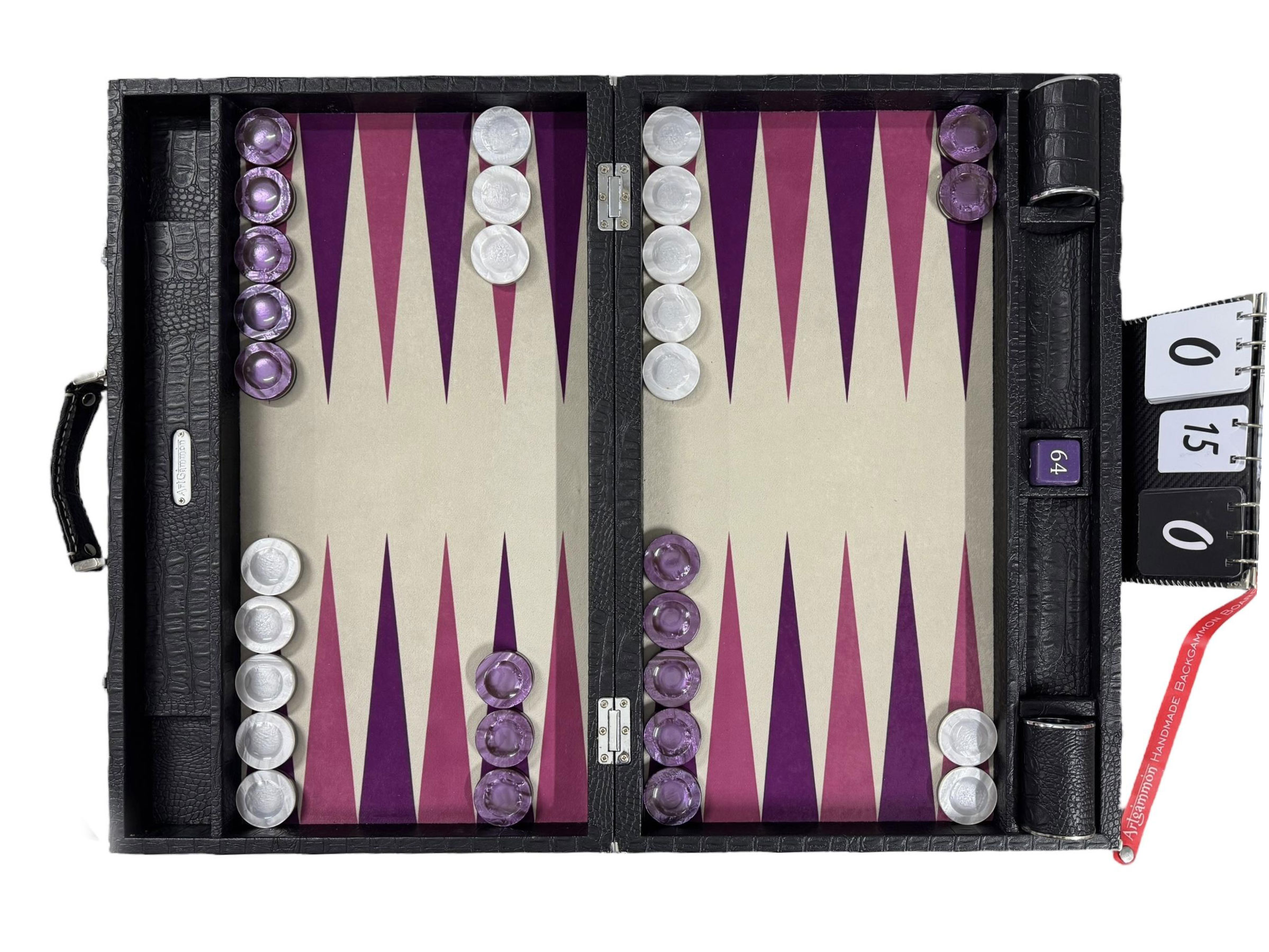 Playing Surface: A special synthetic sewn cloth is chosen for its durability, stain resistance and unmatched playing characteristics. It provides action dice rolls as well as a silky, gliding feeling for the movement of checkers.