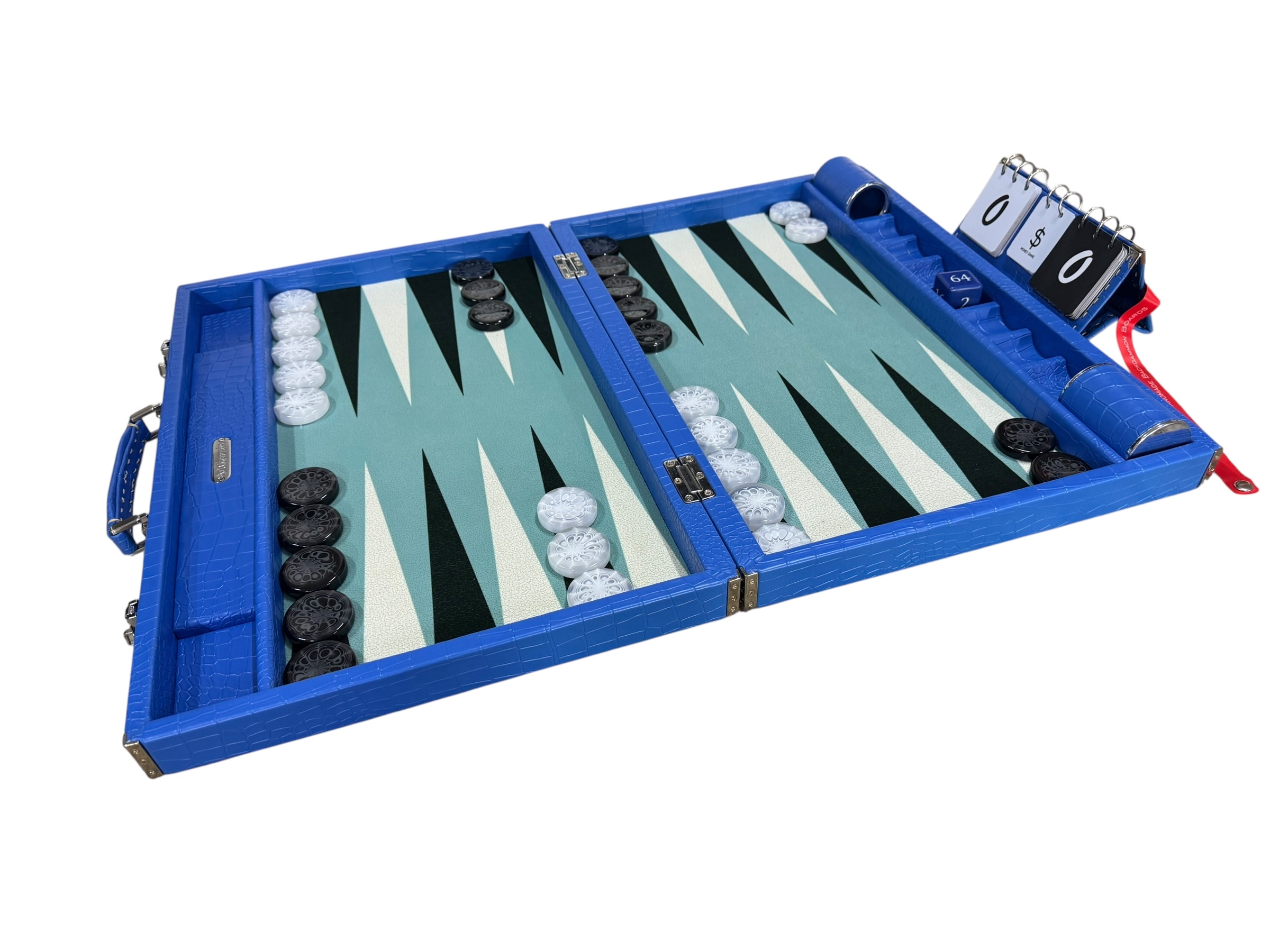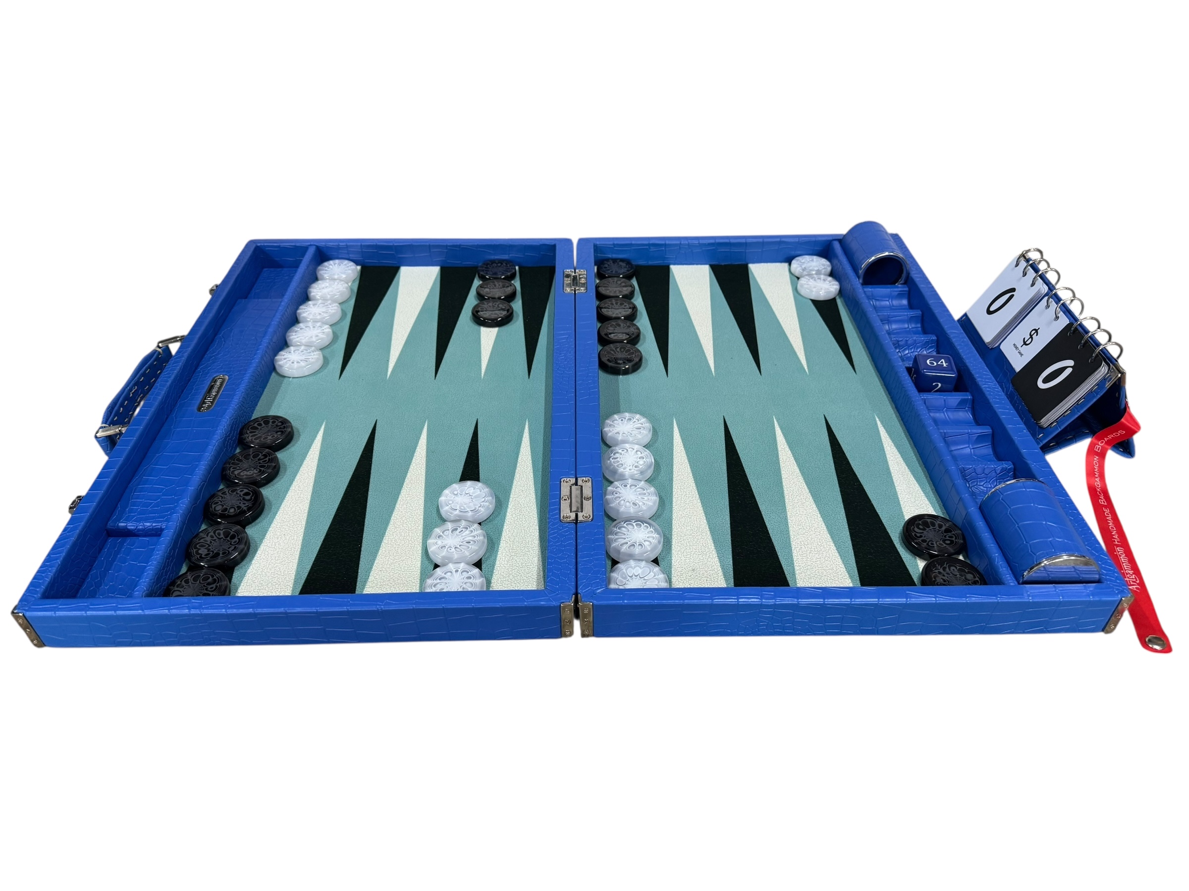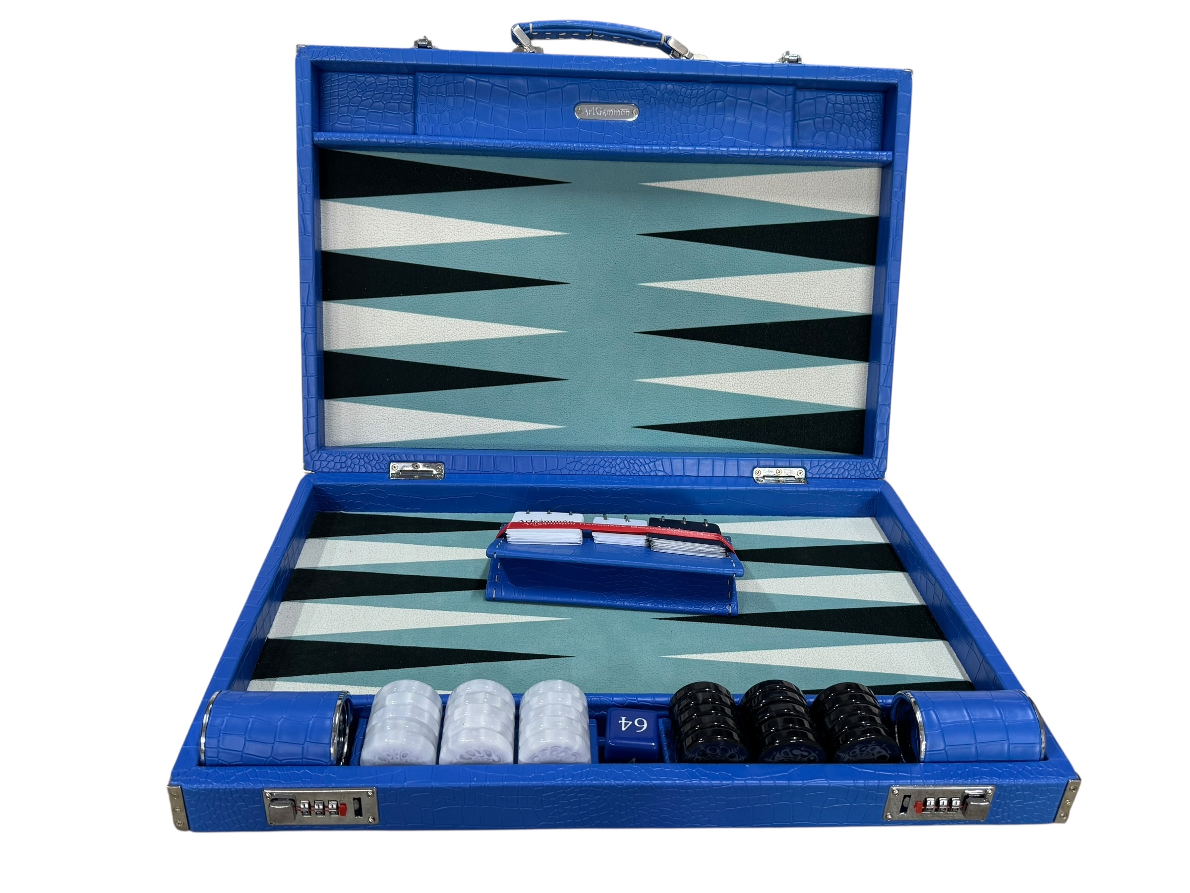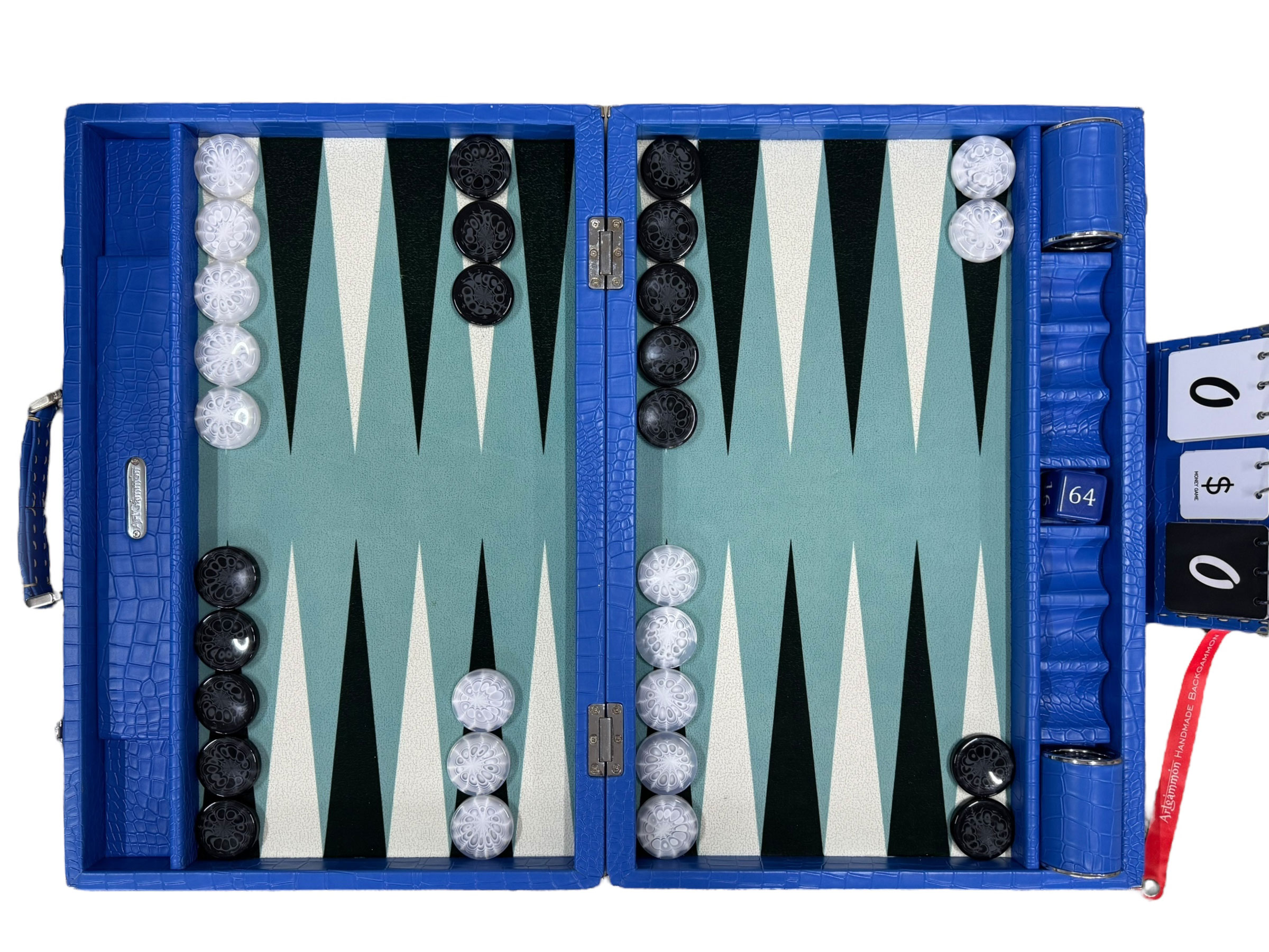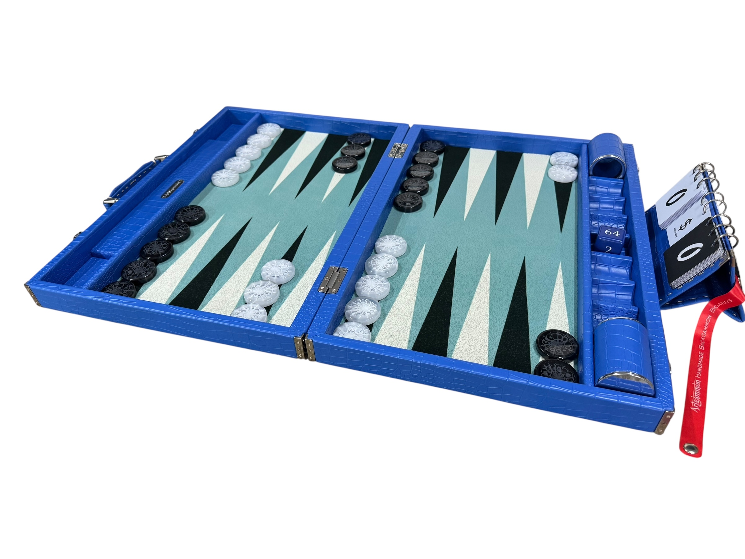 The ArtGammon Blue Croco Backgammon Board is equipped with several thoughtful features to enhance your gaming experience:Open dimensions: 73 x 54 cm (28,7 x 21 inches)Closed dimensions: 36,5 x 54 cm (14,3 x 21 inches)
