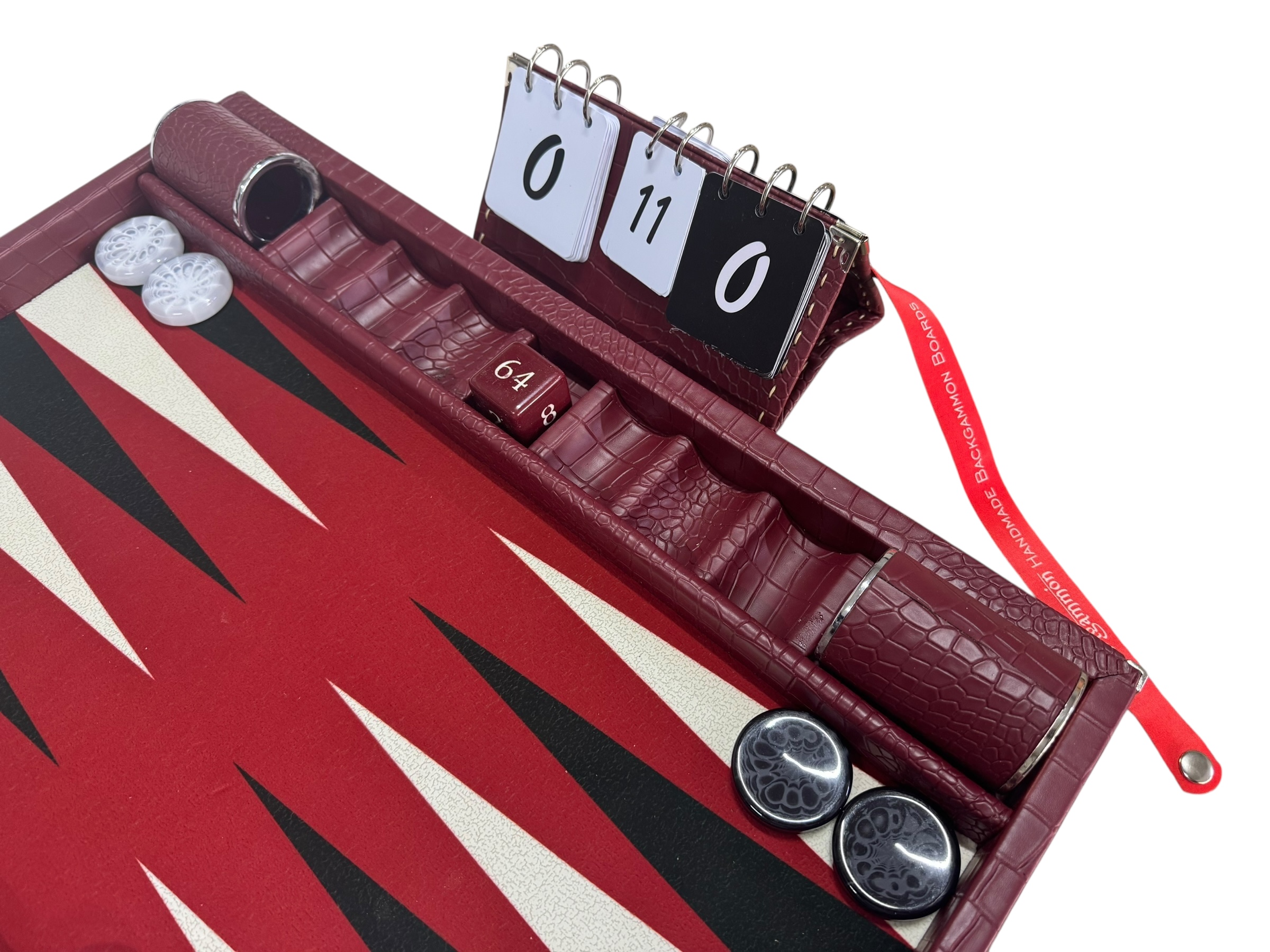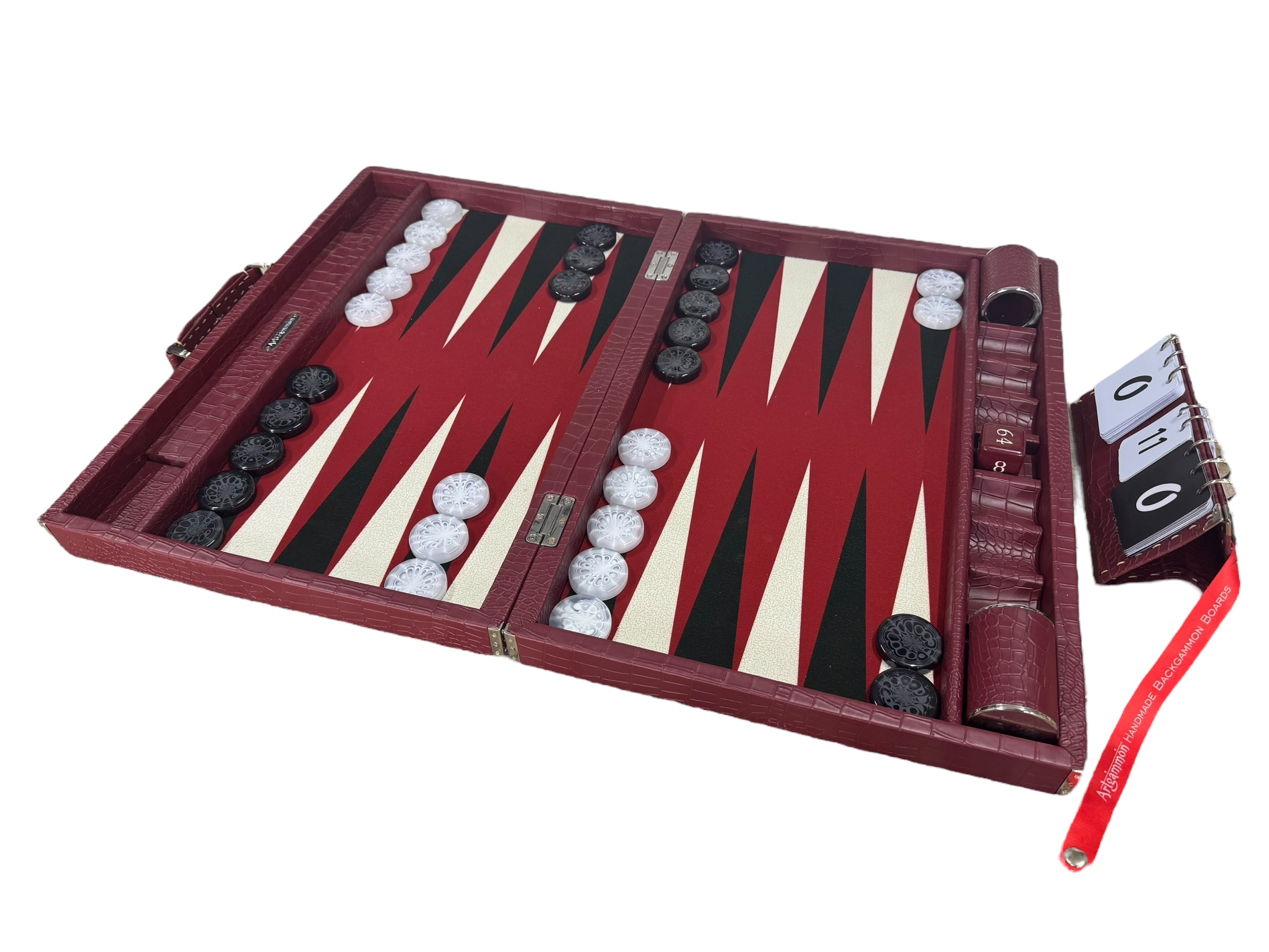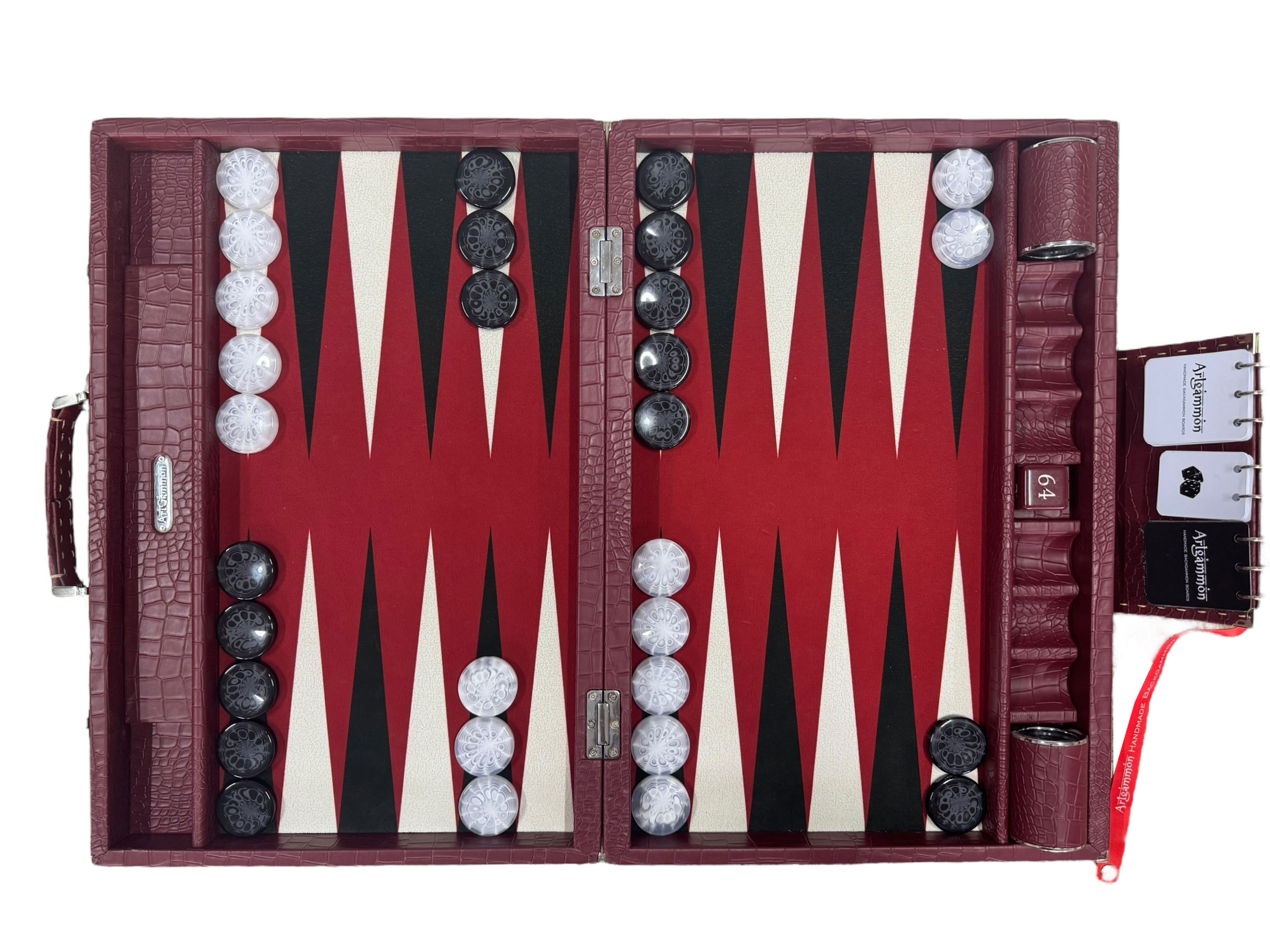 Experience the perfect blend of style and gameplay with the ArtGammon Burgundy Croco Backgammon Board. This board not only enhances the aesthetic of any room but also offers a thrilling gaming experience. Elevate your backgammon sessions and make each game memorable with this stunning piece. Order yours today and join the ranks of those who appreciate fine gaming craftsmanship!