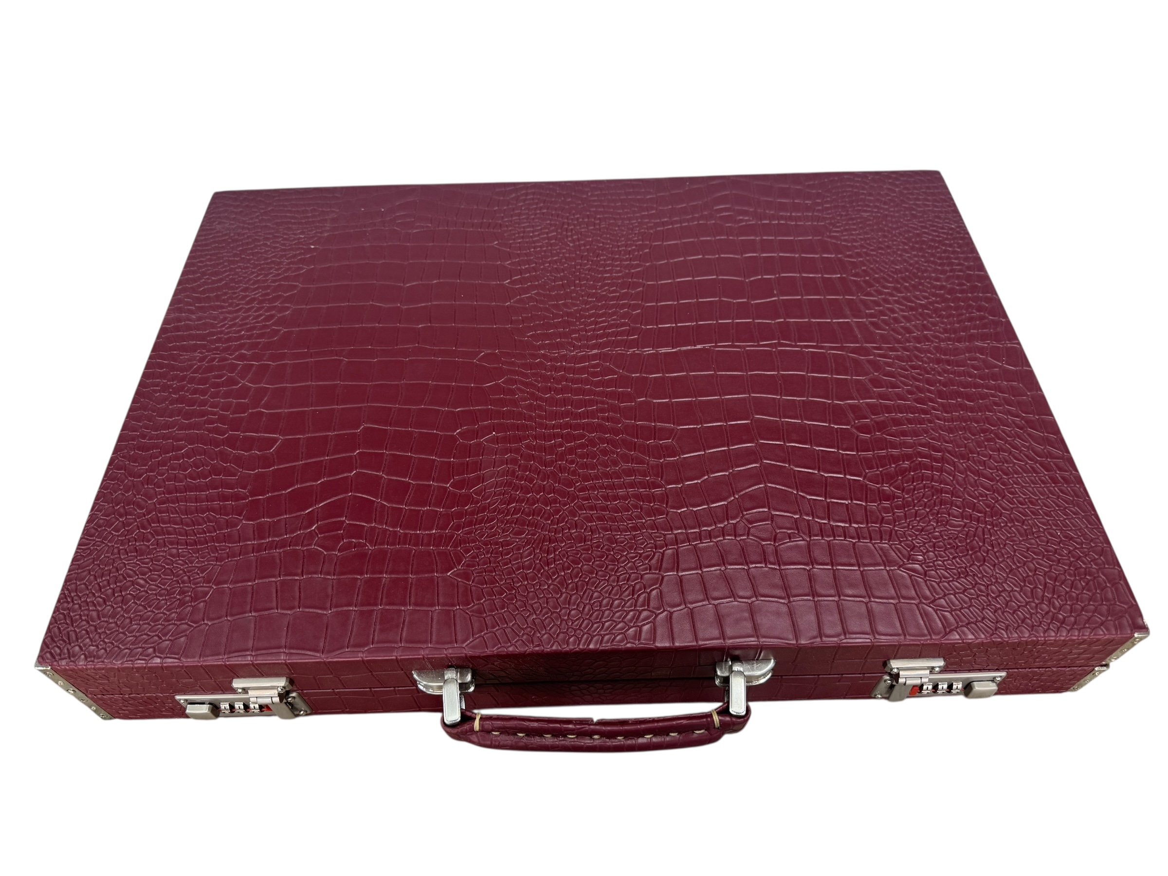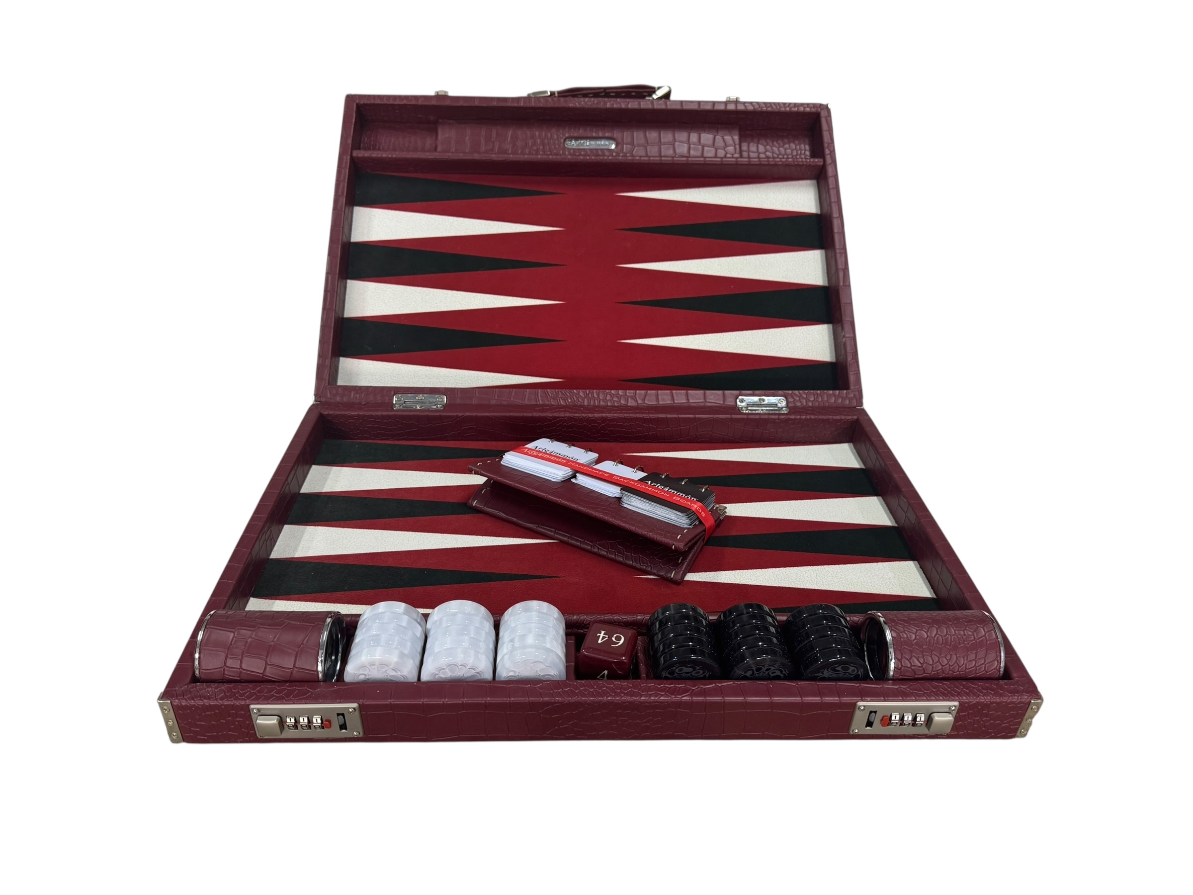 The ArtGammon Burgundy Croco Backgammon Board showcases a stunning Burgundy crocodile-patterned exterior that exudes sophistication and luxury. The high-quality material mimics the texture of genuine crocodile leather, giving the board a unique and captivating appearance. This contemporary design is perfect for those who appreciate fine craftsmanship and want a statement piece in their game collection.
