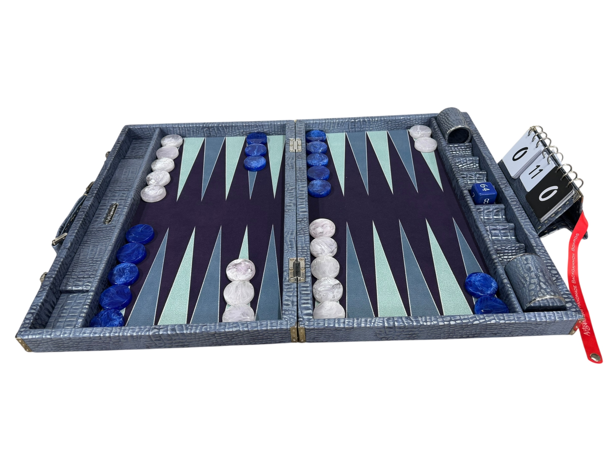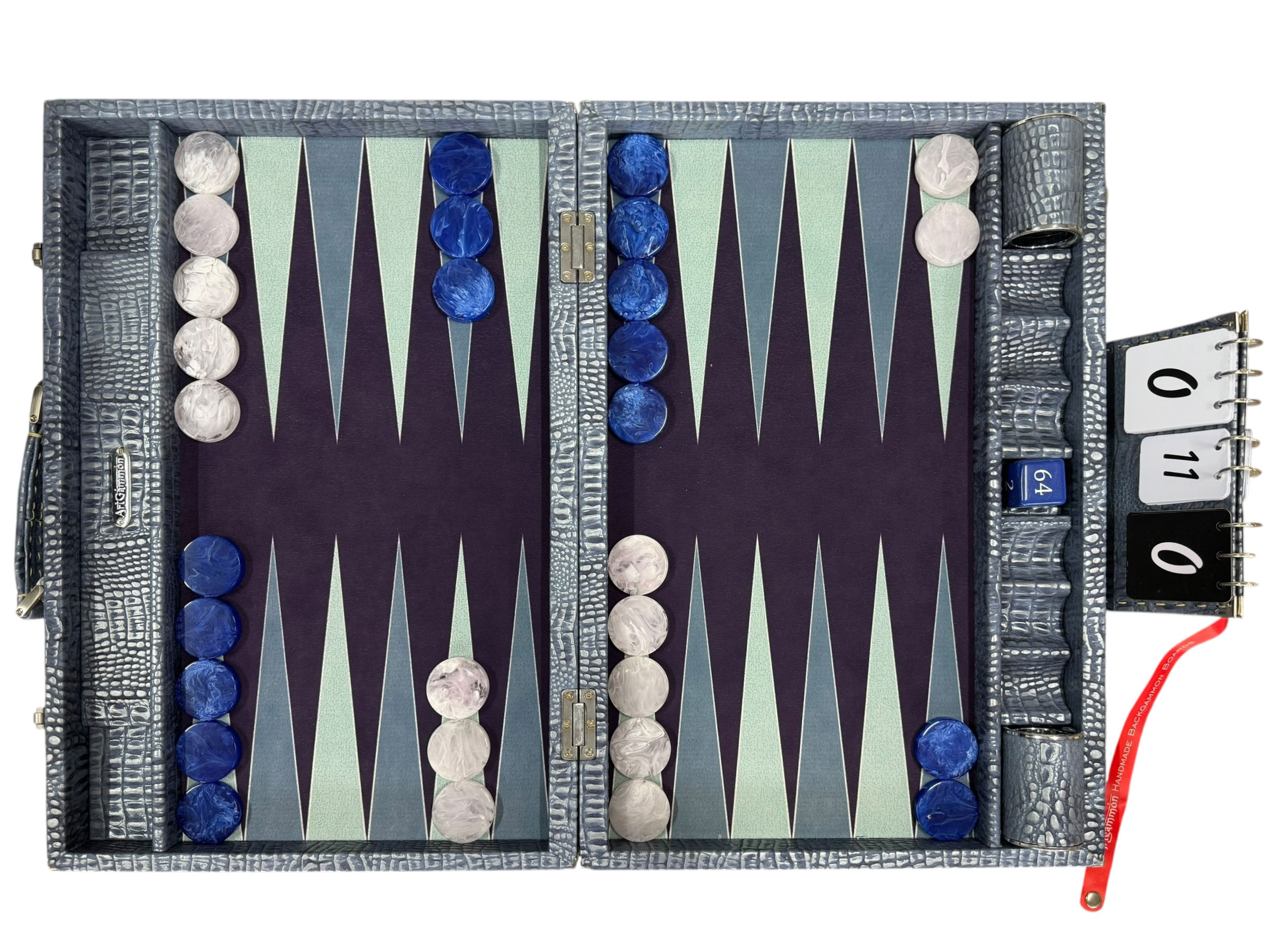The ArtGammon Blue Brown Alligator Backgammon Board is equipped with several thoughtful features to enhance your gaming experience:Open dimensions: 73 x 54 cm (28,7 x 21 inches)Closed dimensions: 36,5 x 54 cm (14,3 x 21 inches)