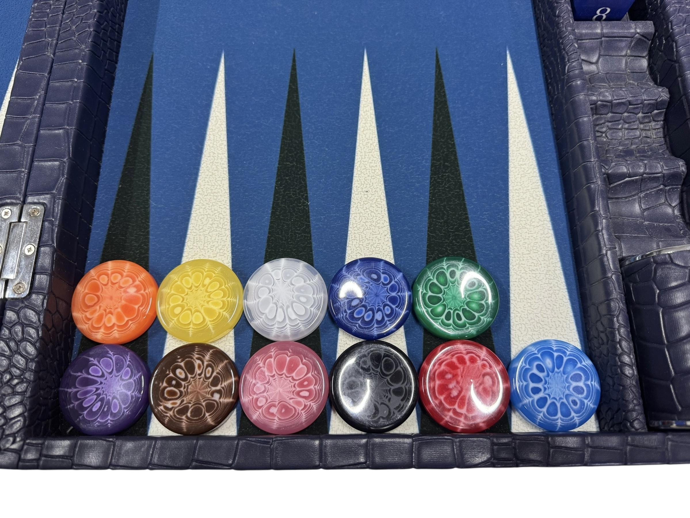 Elevate your game nights with the exquisite ArtGammon Navy Blue Croco Backgammon Board, a true masterpiece that combines elegance with functionality. Crafted for enthusiasts and collectors alike, this board is designed to impress while providing an unparalleled playing experience.