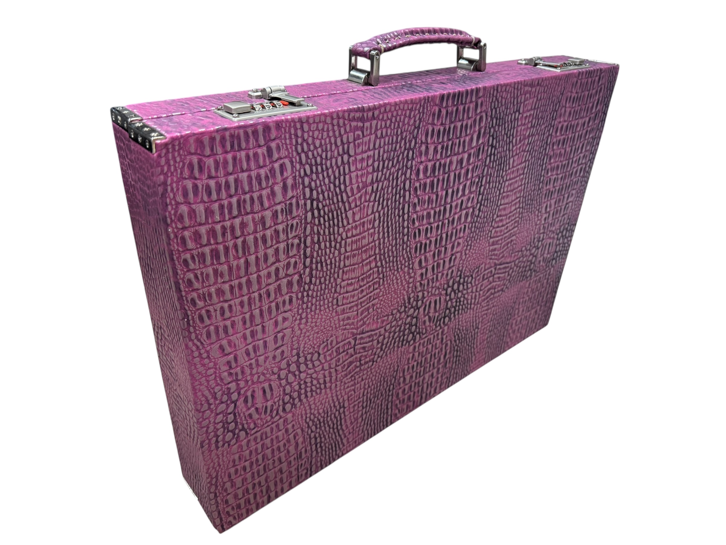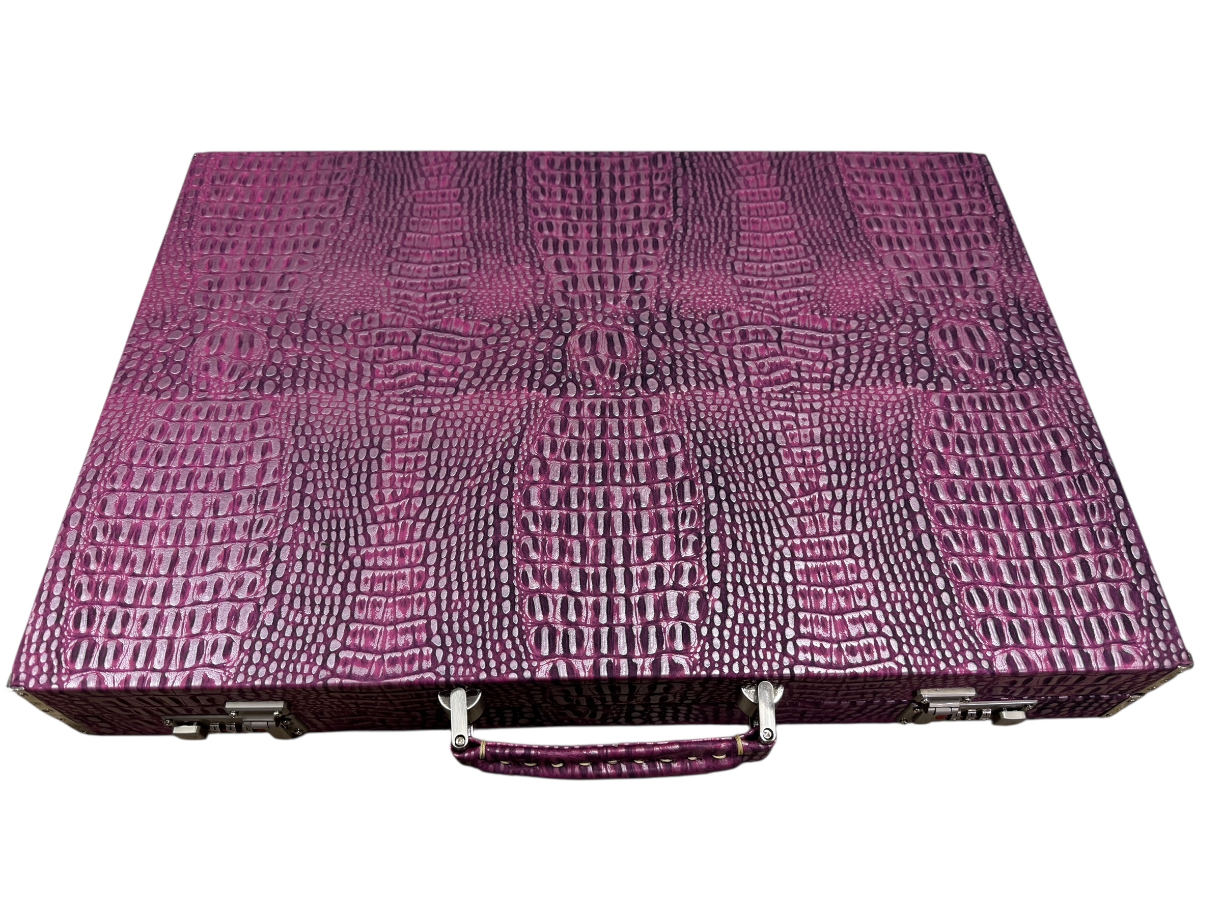 The ArtGammon Pink Alligator Backgammon Board showcases a stunning Pink Alligator-patterned exterior that exudes sophistication and luxury. The high-quality material mimics the texture of genuine crocodile leather, giving the board a unique and captivating appearance. This contemporary design is perfect for those who appreciate fine craftsmanship and want a statement piece in their game collection.