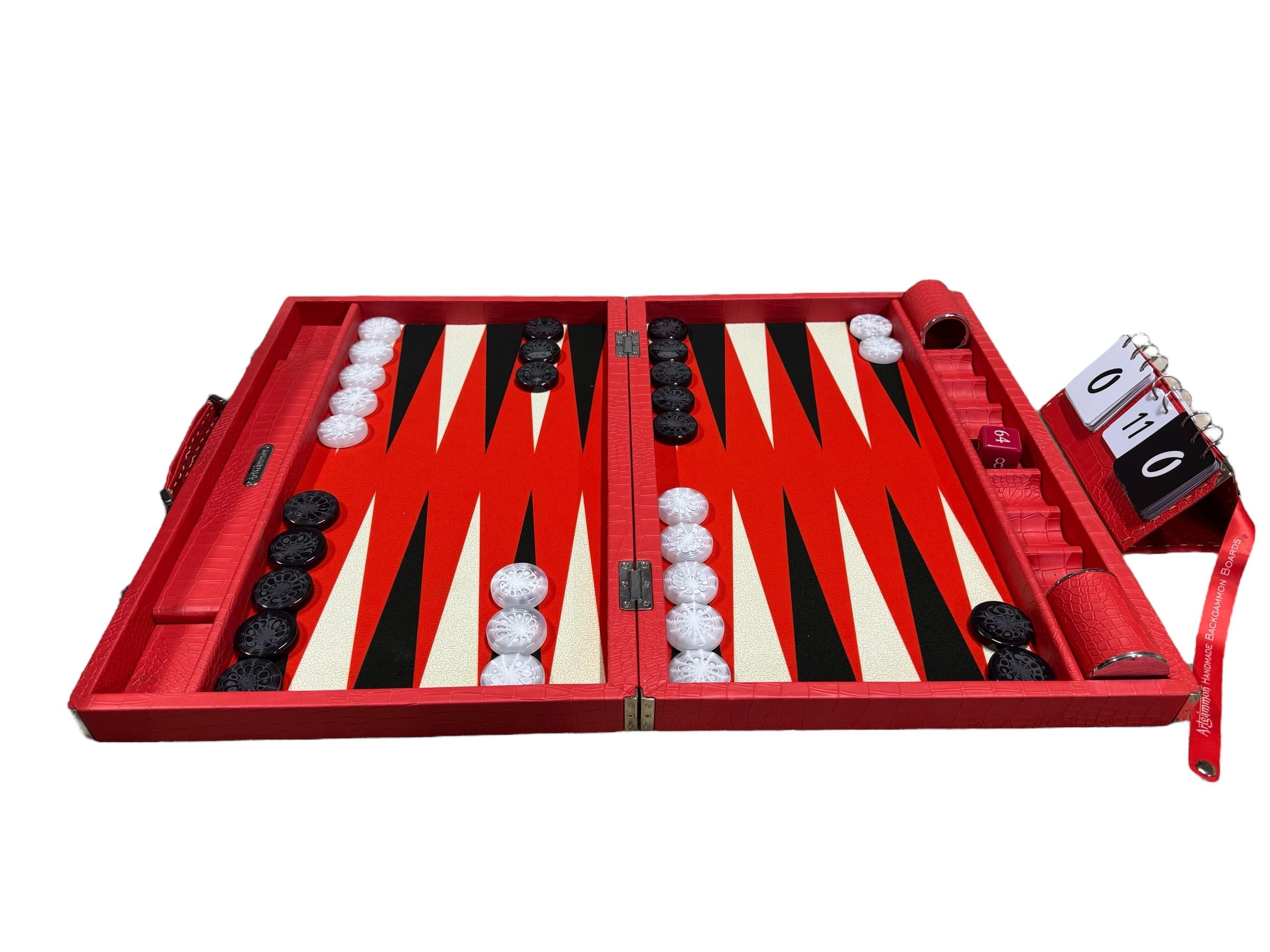 ArtGammon Scarlet Red Croco Backgammon Board