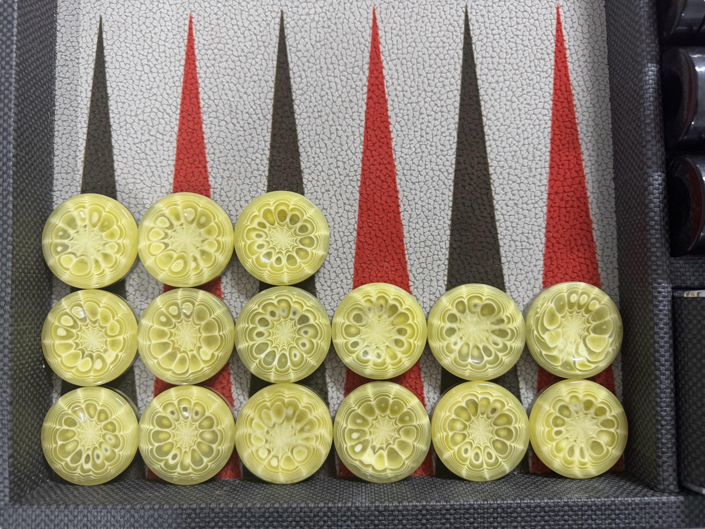 Available in a variety of vibrant colors, these backgammon checkers can suit various personal styles or complement your existing game set. Choose from classic combinations or trendy shades to bring personality to your game nights. Each color variant is chosen not only for its visual appeal but also for high contrast against backgammon boards, making it easy to distinguish between the two players' pieces during intense gameplay.